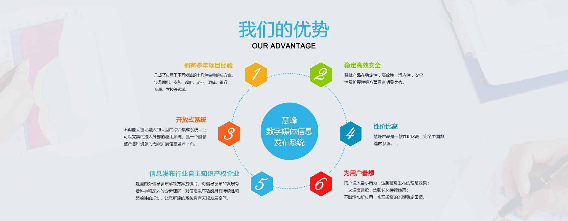 公司本著互惠互利,誠實信用的原則,真誠面對用戶,并愿與社會各界展開廣泛的合作。 公司現(xiàn)已是國內的數(shù)字媒體信息發(fā)布系統(tǒng)解決方案提供商,產品涉及大中型企業(yè)、商業(yè)地產、各級黨政機關、軍隊、司法、信息通信、金融、醫(yī)療、教育、能源交通、公用事業(yè)領域。